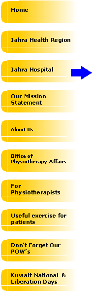 Al- Jahra Hospital Is established in 1976 and start to function in 1981 - Feb. 18 th. Hospital set up: Hospital consist of 2 flours o Ground flour o First four. Ground flour includes Maternity, pediatrics wards, orthopedic wards, nuclear medicine, preventive medicine, physiotherapy dept., out patients clinics, casualty, X-ray, pharmacy, laundry, kitchen, medical store, admission & discharge office, accountant office, medical record office, and investigator's office. First flour includes Surgical wards, medical wards, operation rooms, ICU, OT, CSSD, laboratory, hospital nursing staff, director's office, nutrition dept., library, lecture rooms, SDU, social worker's office, infection control office, preventive medicine office, consultant's office, hotel services, fire prevention dept.
