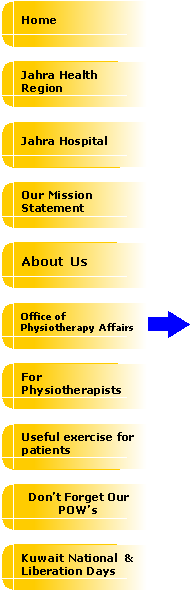 The office of physiotherapy affairs OPA is established on September 18 th, 1996 by the ministerial order No. 360/1996. The director and the staff of OPA are working hard with all superintended physiotherapy in Kuwait hospitals for developing the physiotherapy services in the ministry of health through several activities which include establishing specialty in all physiotherapy fields, giving high attention in training the students of the allied medicine and nursing collage (physiotherapy department) in ministry hospitals, and follow up the training program of its graduates, doing the studies of the ministry requirements of human resources and physiotherapy equipments, and other scientific activities.